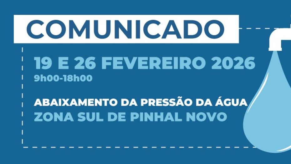 Zona sul Pinhal Novo: abaixamento da pressão da água - 19 e 26 fevereiro