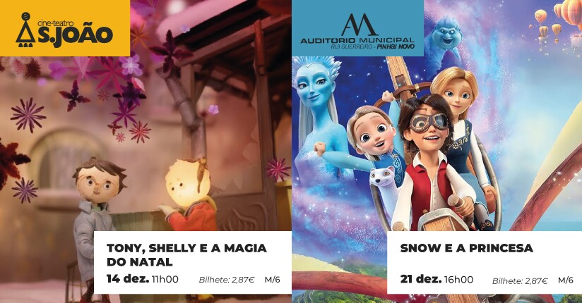 Os filmes “200% Lobo” (16 novembro) e “Tony, Shelly e a Magia do Natal” (14 dezembro) são as propostas de cinema infantil que vão estar em exibição no Cine-Teatro S. João, em Palmela. O Auditório Municipal de Pinhal Novo – Rui Guerreiro apresenta “A Grande Viagem 3” (30 novembro) e “Snow e a Princesa” (21 dezembro).