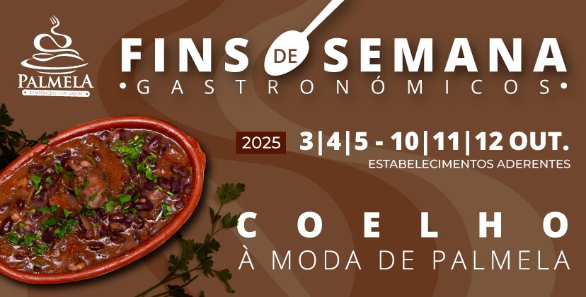 Nos fins de semana de 3,4,5 e 10,11 e 12 de outubro, nove restaurantes do concelho propõem ementas onde o Coelho à moda de Palmela assume lugar de destaque, na próxima edição dos Fins de Semana Gastronómicos.