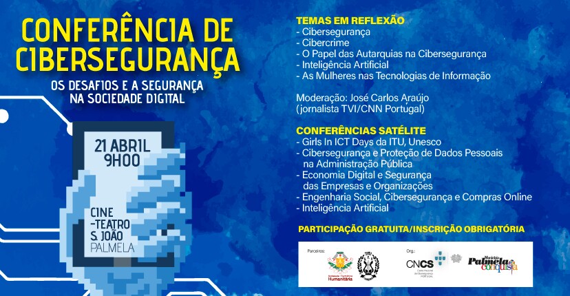 O Município de Palmela e o Centro Nacional de Cibersegurança promovem, dia 21 de abril, no Cine-Teatro S. João, em Palmela, a Conferência “Os Desafios e a Segurança na Sociedade Digital.