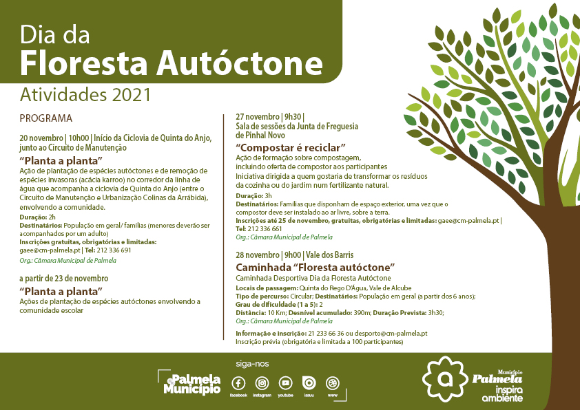 O Município de Palmela comemora o Dia da Floresta Autóctone, assinalado a 23 de novembro, com atividades dirigidas à comunidade educativa e população em geral, em Quinta do Anjo, Pinhal Novo e Parque Natural da Arrábida.