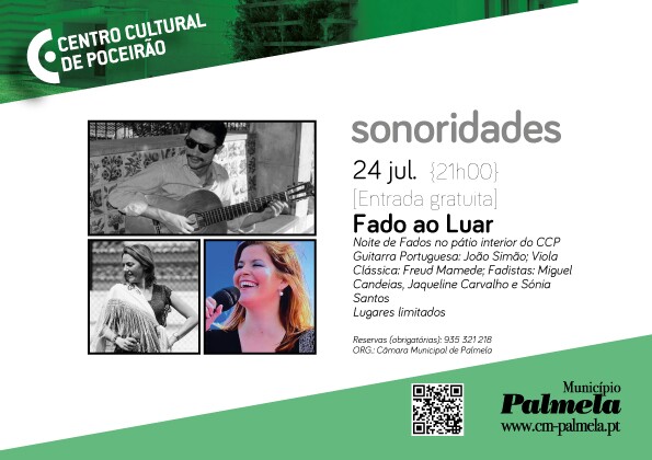 No dia 24 de julho, às 21h00, a iniciativa “Fado ao Luar” proporciona uma noite de fados no pátio interior do Centro Cultural de Poceirão, organizada pela Câmara Municipal Palmela, com entrada gratuita.