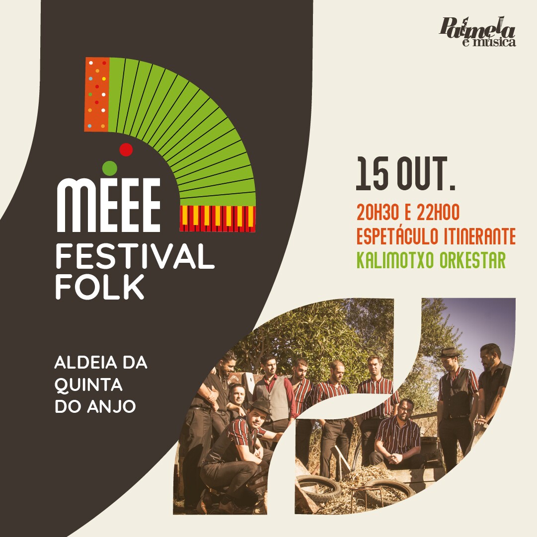 O “Méee, Festival Folk”, uma organização do Município de Palmela, com a Junta de Freguesia e a comunidade de Quinta do Anjo e o apoio da SIM, pretende afirmar-se como uma casa da multiculturalidade, com base na música tradicional e popular, nacional e internacional, ou como ponto de partida para novas propostas no domínio da música e dança Folk. Consulte o programa aqui.
