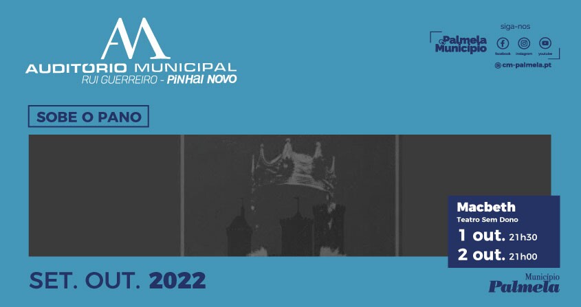 O Teatro Sem Dono estreia o espetáculo “Macbeth” no Auditório Municipal de Pinhal Novo - Rui Guerreiro no dia 1 de outubro, às 21h30. A peça tem nova sessão no dia 2 de outubro, às 21h00.