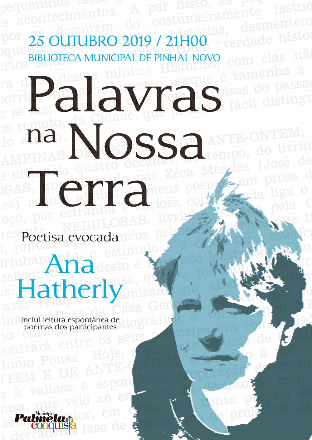 O próximo encontro de poesia “Palavras na Nossa Terra” realiza-se no dia 25 de outubro, às 21h00, na Biblioteca Municipal de Pinhal Novo, e vai homenagear a poetiza Ana Hatherly.