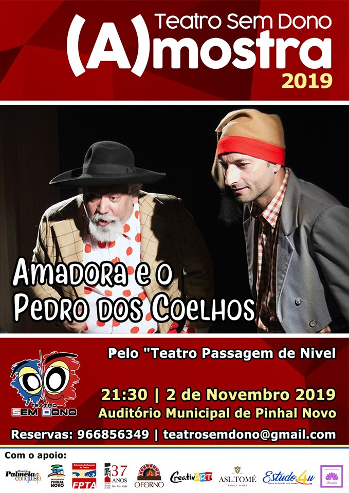 "Teatro Sem Dono (A)Mostra: Amadora e o Pedro dos Coelhos" é a peça de teatro que vai estar em exibição no Auditório Municipal de Pinhal Novo no dia 2 de novembro, às 21h30.