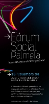O Fórum Social Palmela pretende ser um espaço de conhecimento, reflexão e debate das dinâmicas sociais locais para, em conjunto, enfrentar os novos desafios que se colocam ao concelho. No âmbito da Rede Social de Palmela, o Plano de Desenvolvimento Social concelhio assume particular relevância, enquanto instrumento privilegiado de planeamento estratégico de base territorial. O actual PDS (2009-2013) está estruturado em oito eixos de intervenção social e vai estar no centro do debate, de forma a aprofundar o conhecimento sobre o documento e a partilhar as experiências dos parceiros que o implementam no terreno.
