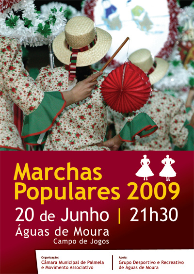 A localidade de Águas de Moura, Freguesia de Marateca, será palco da apresentação pública das Marchas Populares do Concelho de Palmela, no dia 20 de Junho, às 21h30, no Campo de Jogos.