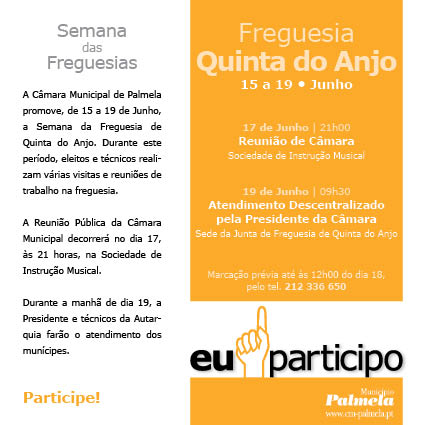 A Câmara Municipal de Palmela dedica a semana de 15 a 19 de Junho à Freguesia da Quinta do Anjo.
