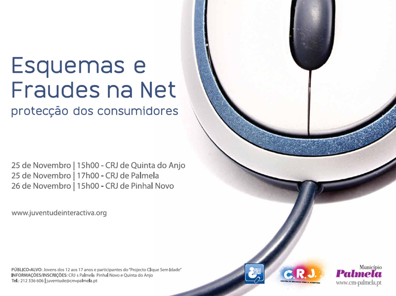 Nos dias 25 e 26 de Novembro, os CRJ - Centros de Recursos para a Juventude do concelho de Palmela são palco de um conjunto de acções de sensibilização sobre o tema “Esquemas e Fraudes na Net – Protecção dos Consumidores”.