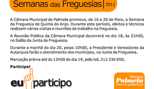 A reunião pública quinzenal será descentralizada e decorrerá no dia 18, quarta-feira, às 21 horas, no salão da Junta de Freguesia, com transmissão em directo em www.cm-palmela.pt. Para facilitar a discussão de temas de especial interesse para as populações, o período aberto à participação dos munícipes terá lugar no início da reunião,