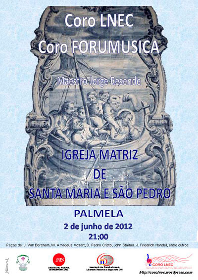 Os Coros LNEC, coro da Associação de Trabalhadores do Laboratório Nacional de Engenharia Civil, e Forumusica e o maestro Jorge Resende, vão atuar no encontro de coros, na Igreja de Santa Maria e São Pedro de Palmela, no dia 2 de junho, pelas 21h00.
