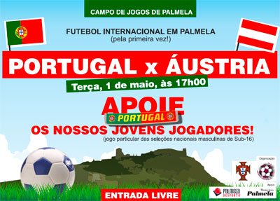 No dia 1 de maio, terça feira, às 17 horas, o Campo de Jogos de Palmela recebe um jogo particular entre as seleções nacionais masculinas de sub-16 de Portugal e da Áustria.