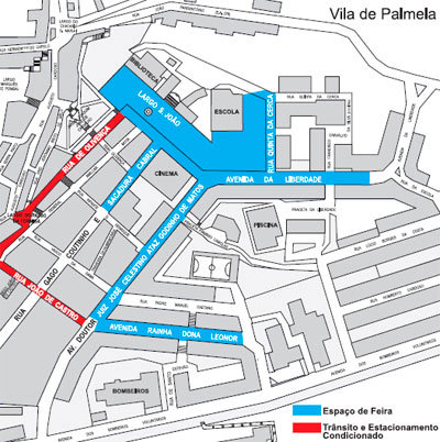 Para que o evento decorra nas melhores condições de segurança, o trânsito e o estacionamento estarão condicionados, entre as 00h00 e as 19h00, nas seguintes artérias da vila de Palmela, de acordo com a sinalização presente no local: