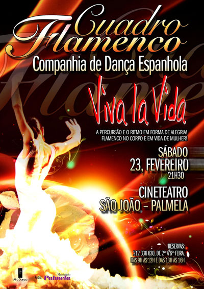 A Companhia de Dança Espanhola Cuadro Flamenco apresenta o espetáculo “Viva la Vida” no Cineteatro S. João, em Palmela, no dia 23 de fevereiro, às 21h30, no âmbito da digressão 2012/2013.
