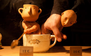 Contada com barro, esta é uma história terna, para todos os públicos, sobre uma pequena personagem com uma enorme vontade de fugir da montra em que se encontra. É, também, uma história de amor, de fracassos, onde cabem um torno, uma chávena que respira, duas pessoas, uma olaria e quatro mãos brincalhonas.