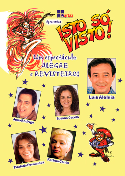 Com um elenco de caras bem conhecidas do teatro e da televisão – Luís Aleluia, João Rodrigo, Fátima Couto, Susana Cacela e Piedade Fernandes – “Isto só visto!” é «um protesto popular pela alegria e boa disposição», onde a crítica mordaz aparece de mão dada com o humor e com a música.