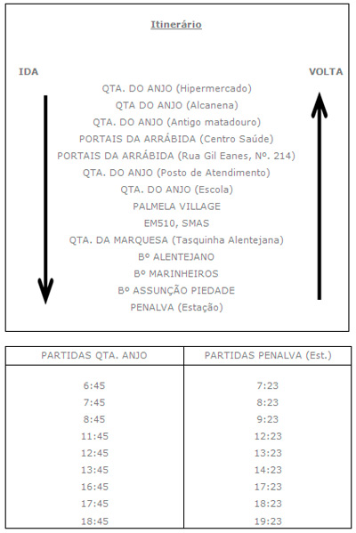 Ligação experimental Quinta do Anjo - Penalva com horário atualizado