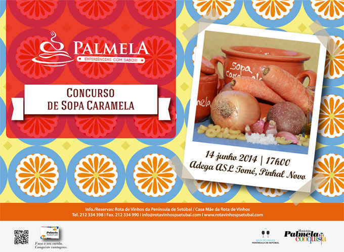 A programação especial Sopa Caramela foi desenvolvida pela Câmara Municipal de Palmela, em parceria com a Associação da Rota de Vinhos da Península de Setúbal/ Costa Azul e com a restauração local, no âmbito do programa “Palmela, Experiências com Sabor!”. No final de julho, o destaque será para a fruta de Palmela, com fins de semana gastronómicos, um show cooking e um concurso de compotas.