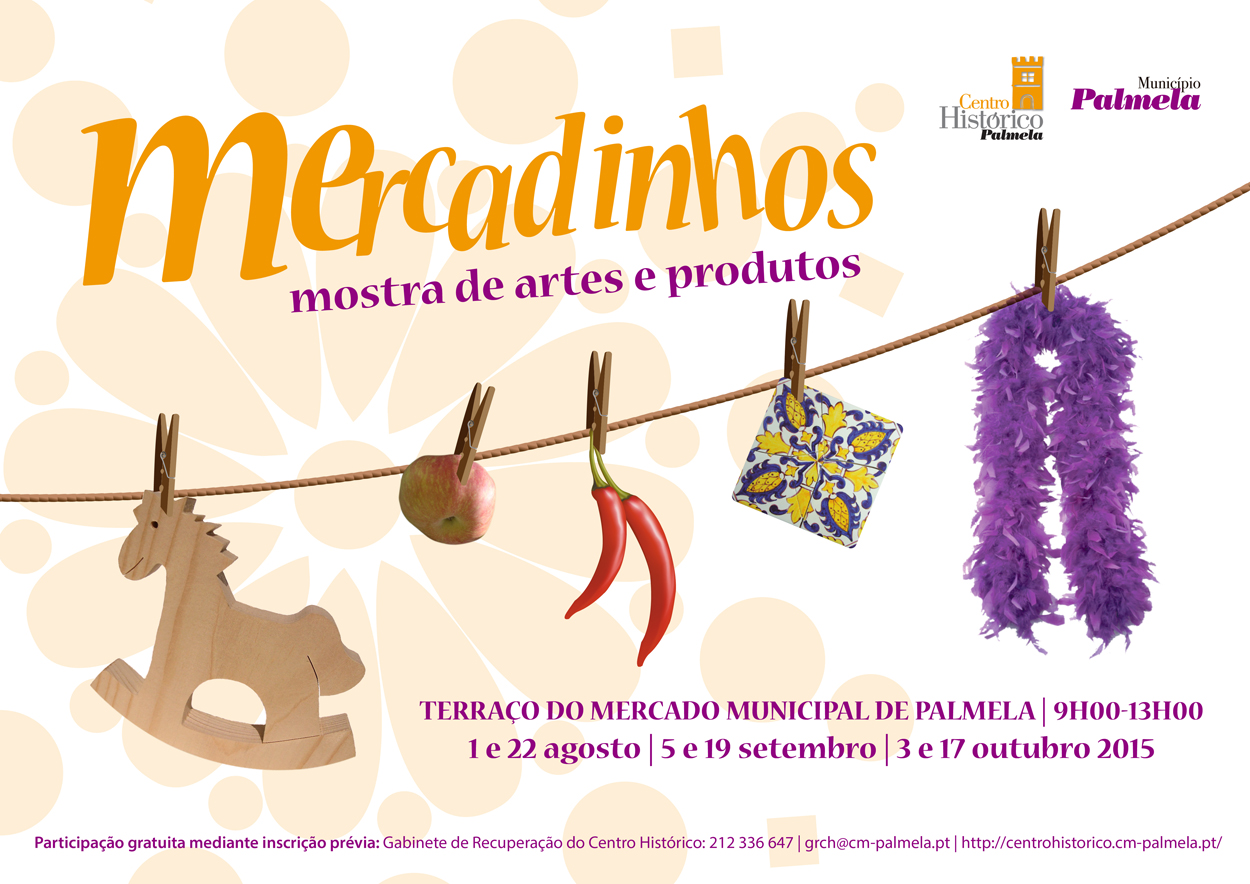 A participação nos “Mercadinhos de Palmela” é gratuita, mediante inscrição prévia: Gabinete de Recuperação do Centro Histórico: 212 336 647 | grch@cm-palmela.pt | http://centrohistorico.cm-palmela.pt