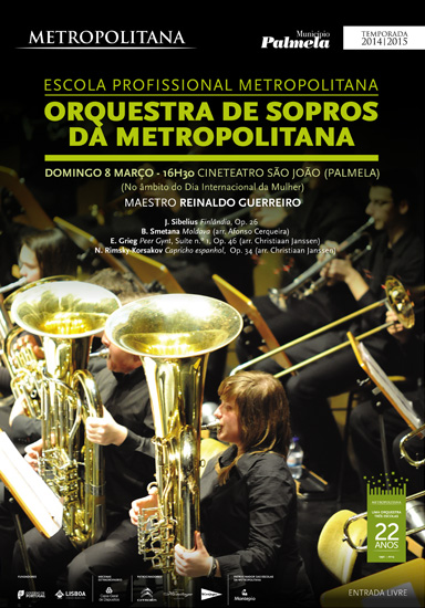 No âmbito das comemorações do Dia Internacional da Mulher, dia 8 de março, às 16h30, o Cineteatro S. João, em Palmela, é palco de um concerto pela “Orquestra de Sopros da Metropolitana”.