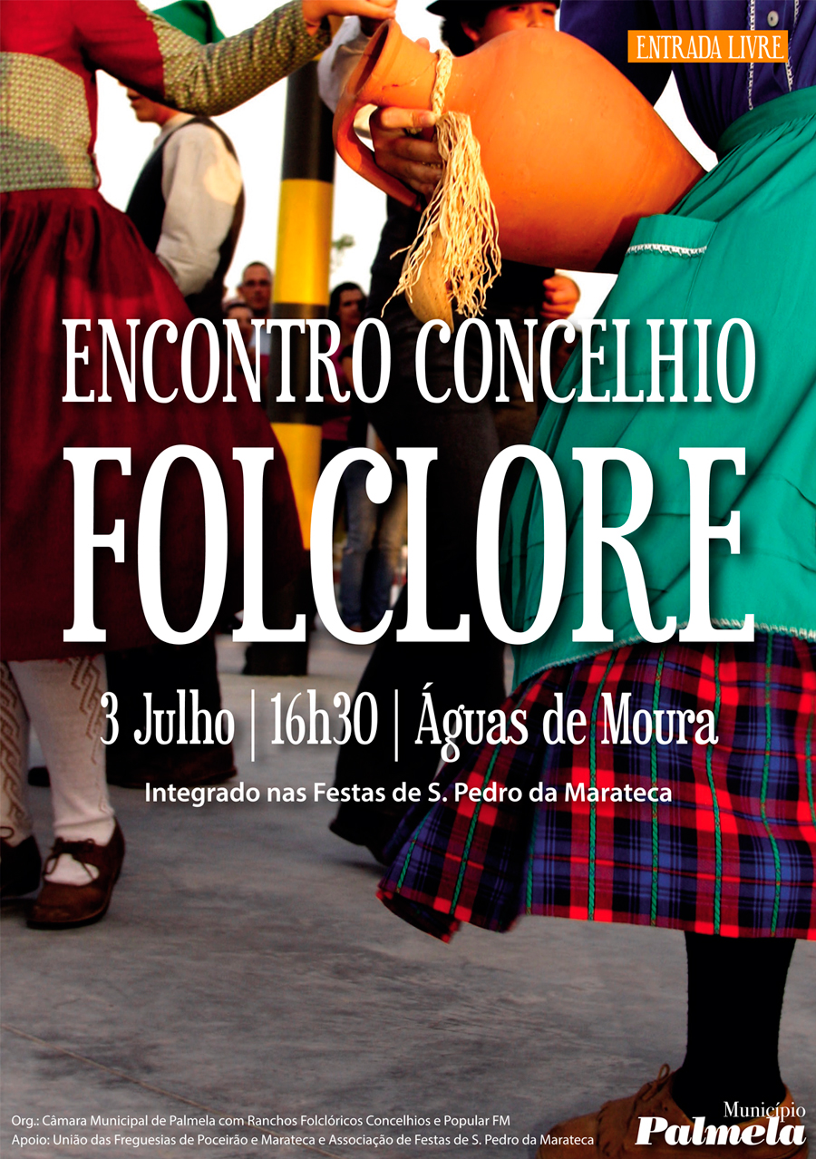 No dia 3 de julho, domingo, às 16h30, Águas de Moura recebe o Encontro Concelhio de Folclore 2016. A iniciativa integra o programa das Festas de S. Pedro da Marateca, numa parceria entre o Município, os ranchos folclóricos do concelho e a Popular FM, com o apoio da União das Freguesias de Poceirão e Marateca e da Associação de Festas.