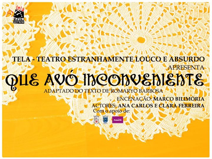 O TELA – Teatro Estranhamente Louco e Absurdo apresenta, no dia 9 de julho, às 21h30, no Centro Cultural de Poceirão, a peça “Que Avó Inconveniente”. O espetáculo, adaptado do texto de Romaryo Barbosa e destinado a maiores de 16 anos, tem encenação de Marco Bilimória e conta, no elenco, com Ana Carlos e Clara Ferreira.