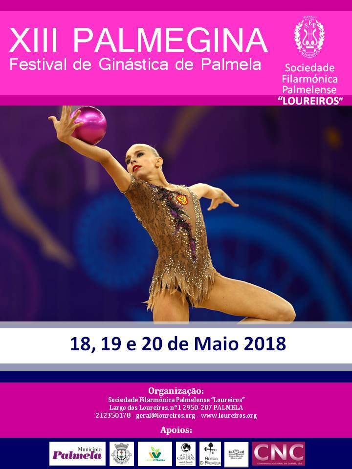 Mais de 750 ginastas participam, nos dias 18, 19 e 20 de maio, no XIII Palmegina – Festival de Ginástica de Palmela, organizado pela Sociedade Filarmónica Palmelense “Loureiros”. O evento desportivo, que vai ter lugar na sede dos “Loureiros”, é apoiado pela Câmara Municipal de Palmela, no âmbito do Programa de Desenvolvimento da Ginástica.
