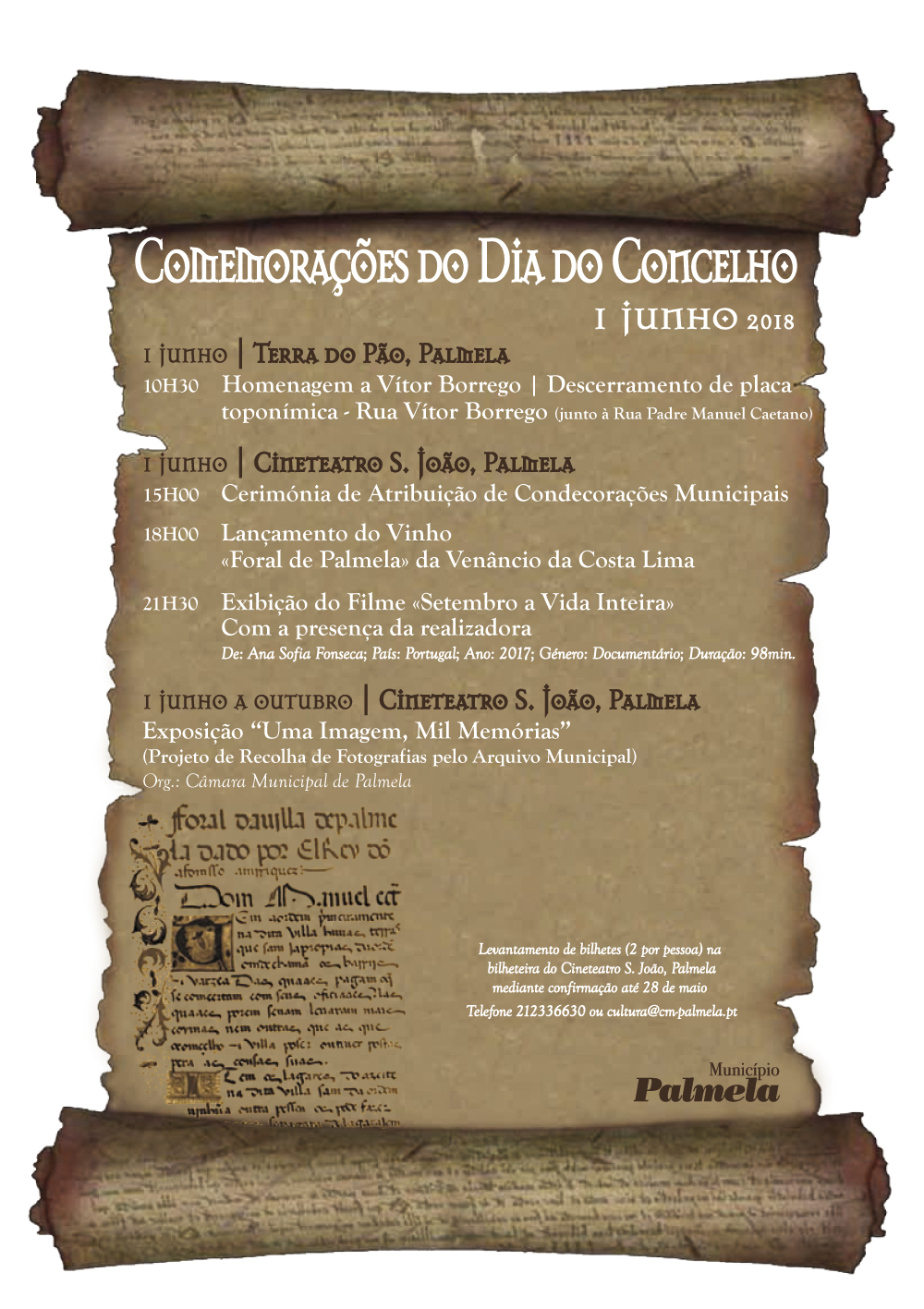 A seguir à cerimónia, terá lugar, também no Cineteatro S. João (1.º andar), às 18h00, o lançamento do vinho “Foral de Palmela”, da Adega Venâncio da Costa Lima.