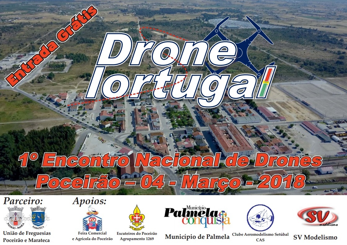 Organizado em parceria entre a Portugal Drone e a União de Freguesias de Poceirão e Marateca, acontece em Poceirão, no dia 4 de março, domingo, entre as 9h00 e as 20h00, o 1.º Encontro Nacional de Drones.