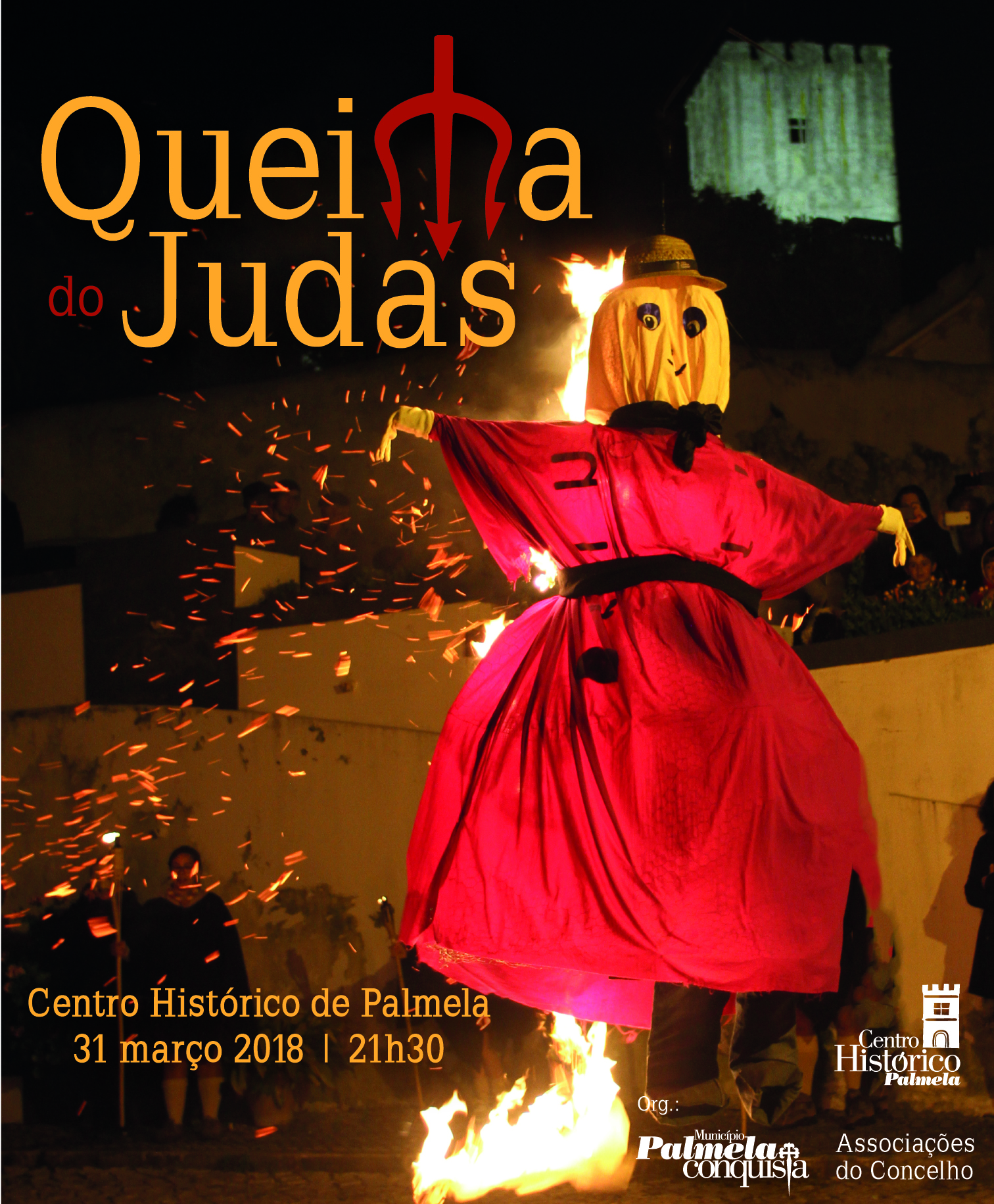 Com animação assegurada pelos Bardoada – Grupo do Sarrafo, o percurso tem início às 21h30, no Largo dos Loureiros e passagem por várias “estações” para a queima do “boneco” e a leitura do seu testamento. Este ano, a Queima conta com um número recorde de 17 grupos: Bardoada – Grupo do Sarrafo (animação), Grupo Coral “Ausentes do Alentejo” (bar), Sociedade Filarmónica Palmelense “Loureiros”, Sociedade Filarmónica Humanitária, Passos e Compassos/ Grupo das Férias Culturais, Grupo de Teatro da Associação dos Serviços Sociais e Culturais dos Trabalhadores do Município de Palmela, ATA – Acção Teatral Artimanha, Associação Teatro Sem Dono, Sociedade Columbófila de Palmela, Associação de Escoteiros de Portugal – Grupo 40 de Palmela, INdiferentes, Associação de Idosos de Palmela, Moto Clube de Palmela, TELA – Teatro Extremamente Louco e Absurdo, Teatro da Vila, Avózinhas e PIA – Projectos de Intervenção Artística (Judas final).