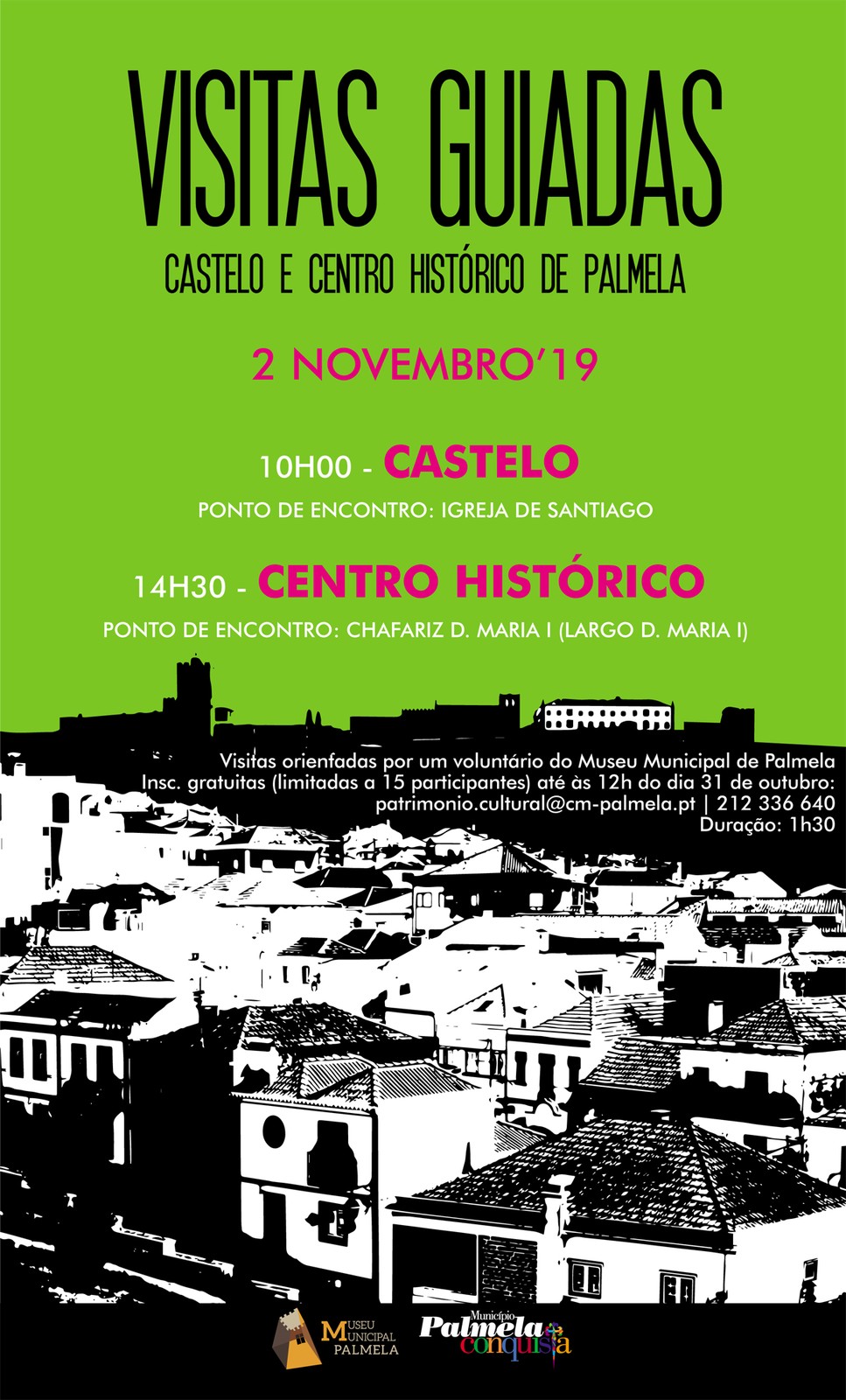 Às 10h00, terá lugar a Visita Guiada ao Castelo de Palmela, monumento nacional e antiga sede da Ordem de Santiago, com ponto de encontro junto à Igreja de Santiago, que dará às/aos participantes a possibilidade de saberem mais sobre um dos mais belos castelos do nosso país e apreciarem a paisagem circundante, por entre serras e mar. À tarde, a partir das 14h30, é a vez da Visita Guiada ao Centro Histórico da vila, que parte junto ao Chafariz de D. Maria I, percorrendo jardins, miradouros típicos e edifícios com interesse patrimonial.