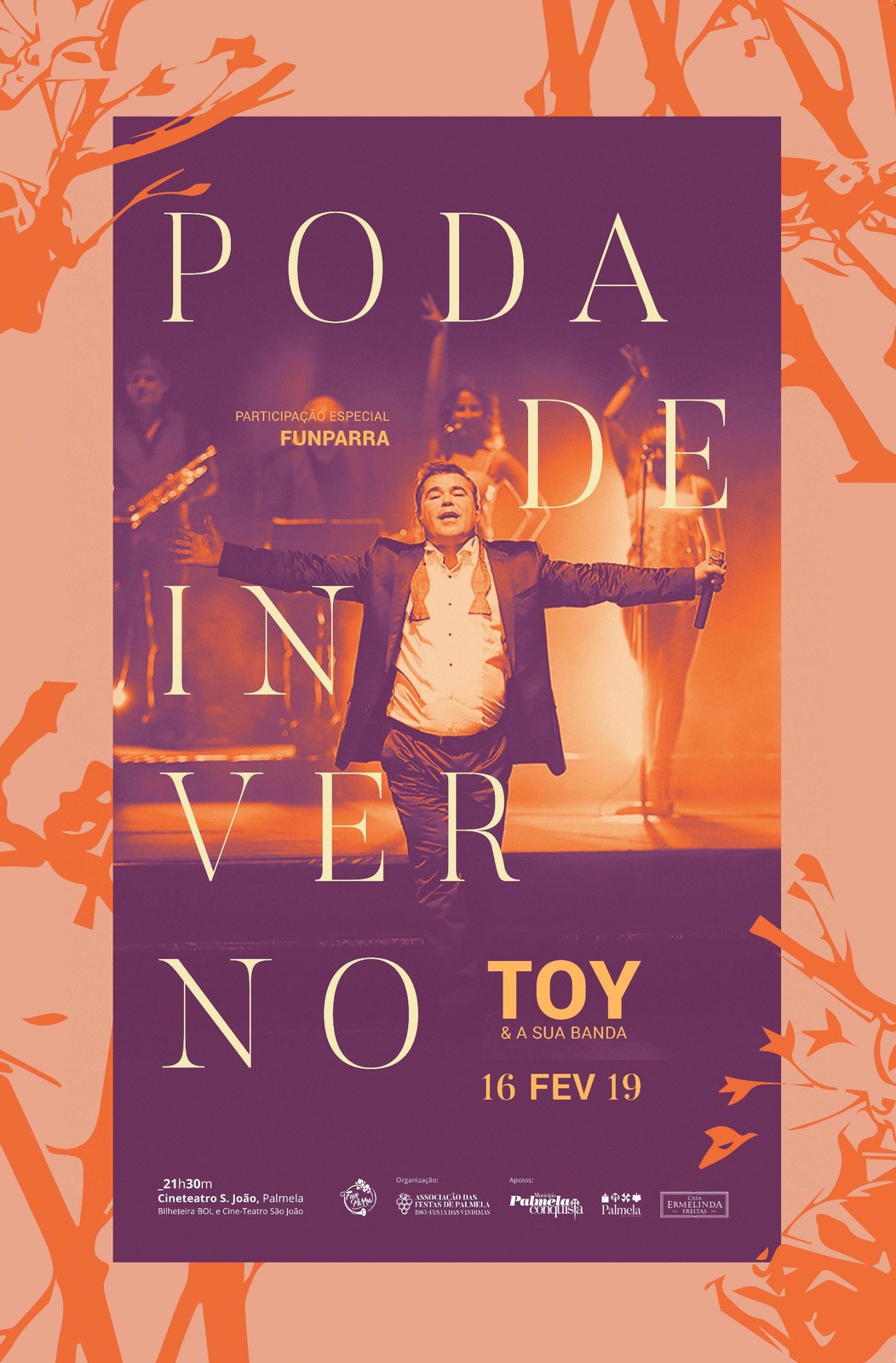 Toy e a sua Banda proporcionam, a 16 de fevereiro, às 21h30, uma noite de festa no Cineteatro S. João, em Palmela, com o evento “Poda de Inverno”. O espetáculo conta com a participação especial dos Funparra.
