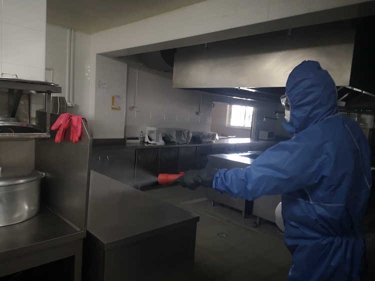 A nebulização dos espaços está a ser feita por técnicos de uma empresa certificada, utilizando um produto eficaz contra a COVID-19. O desinfetante atua, anulando qualquer contaminação e deixando uma película protetora nas superfícies, durante vários dias, resistente às lavagens frequentes. É inócuo para as/os utilizadoras/es e não compromete o normal funcionamento destas valências.