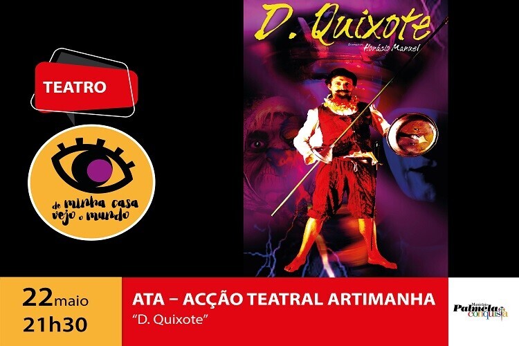 Hoje à noite, 22 de maio às 21h30, a agenda cultural do projeto “De Minha Casa Vejo o Mundo” está por conta do ATA – Ação Teatral Artimanha que estará em cena com a peça “D.Quixote”. Para ver online na página de facebook Catavento ou no canal Youtube do Município.