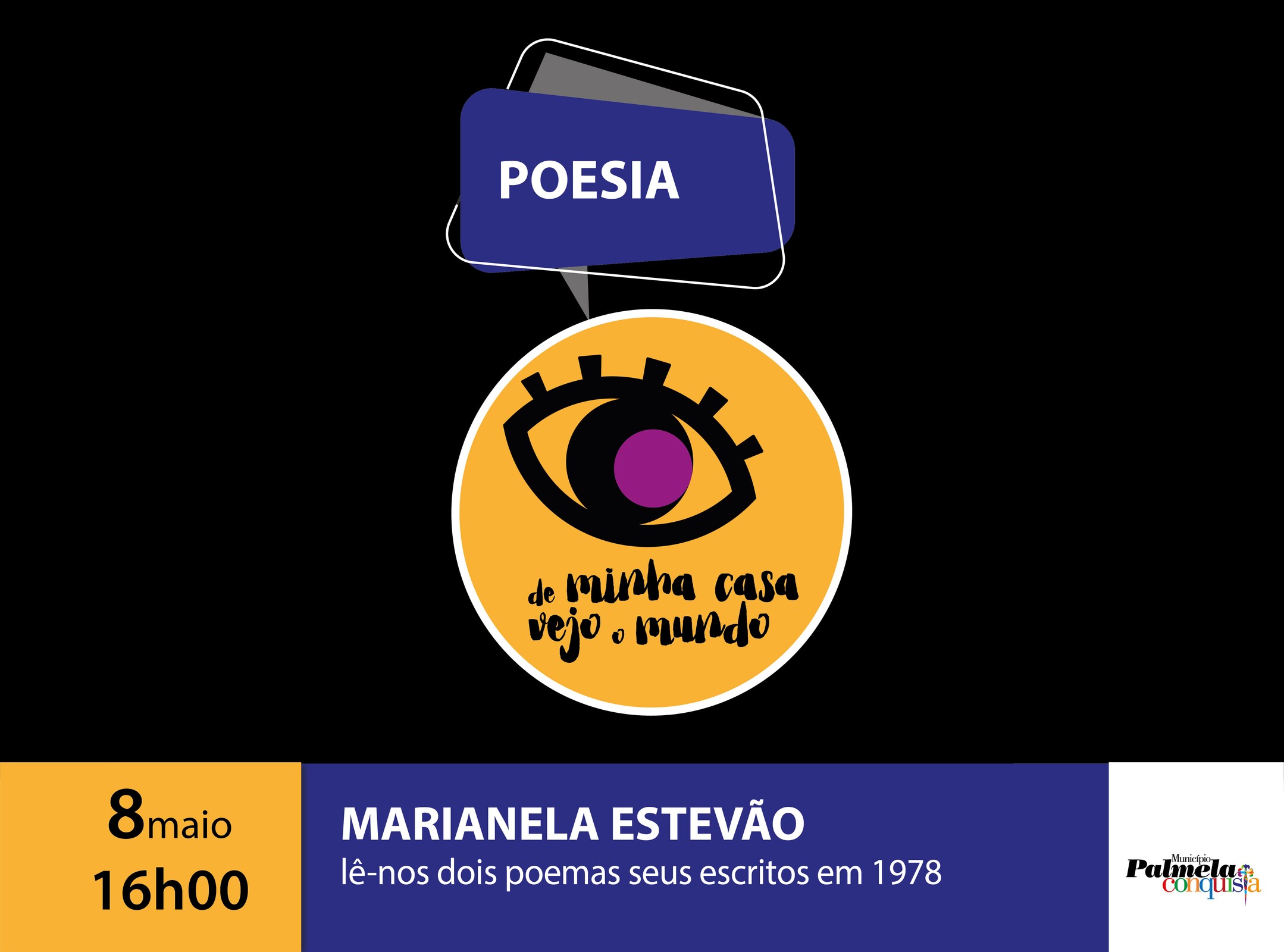 Hoje, às 16h00, o projeto municipal “De minha casa vejo o mundo” proporciona um momento de poesia. Marianela Estêvão, participante assídua nas sessões mensais de poesia na Biblioteca Municipal de Pinhal Novo do projeto “Palavras na Nossa Terra”, lê-nos dois poemas da sua autoria, escritos em 1978: “Frente de Combate” e “Preto no Branco”, um poema sobre racismo.
