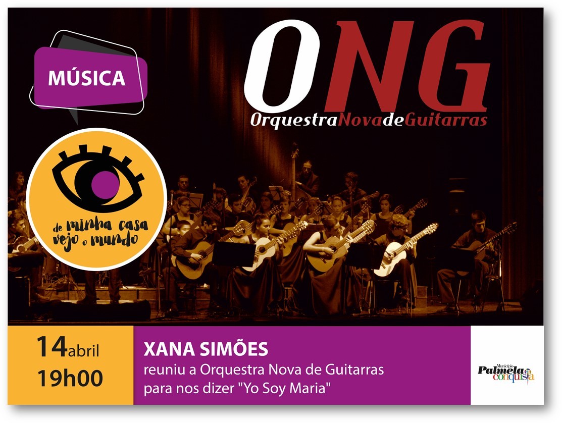 Hoje, às 19h00, o projeto municipal “De minha casa vejo o mundo” convida-a/o a apreciar a interpretação da ONG - Orquestra Nova de Guitarras do tema “You Soy Maria”, recordando um dos momentos altos do concerto realizado pela ONG com a participação de Xana Simões, professora na Orquestra.