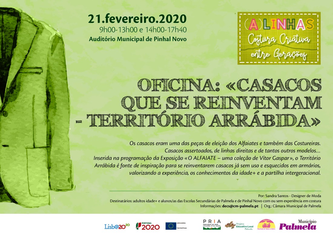 A Oficina é organizada pela Câmara Municipal de Palmela, no âmbito do projeto “(A)Linhas - Costura Criativa Entre Gerações”, desenvolvido em articulação com as Escolas Secundárias de Palmela e de Pinhal Novo, desde maio de 2019, e inserido no PRIA - Percursos em Rede para a Inclusão Ativa. Mais informações: decs@cm-palmela.pt.