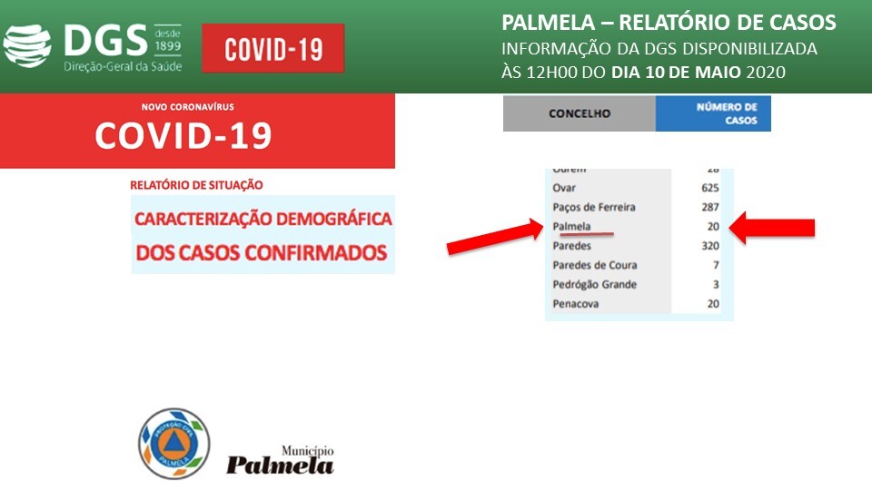 De acordo com informação disponibilizada hoje, dia 10 de maio, no site da DGS/Direção-Geral da Saúde, o concelho de Palmela regista 20 casos positivos de COVID-19.