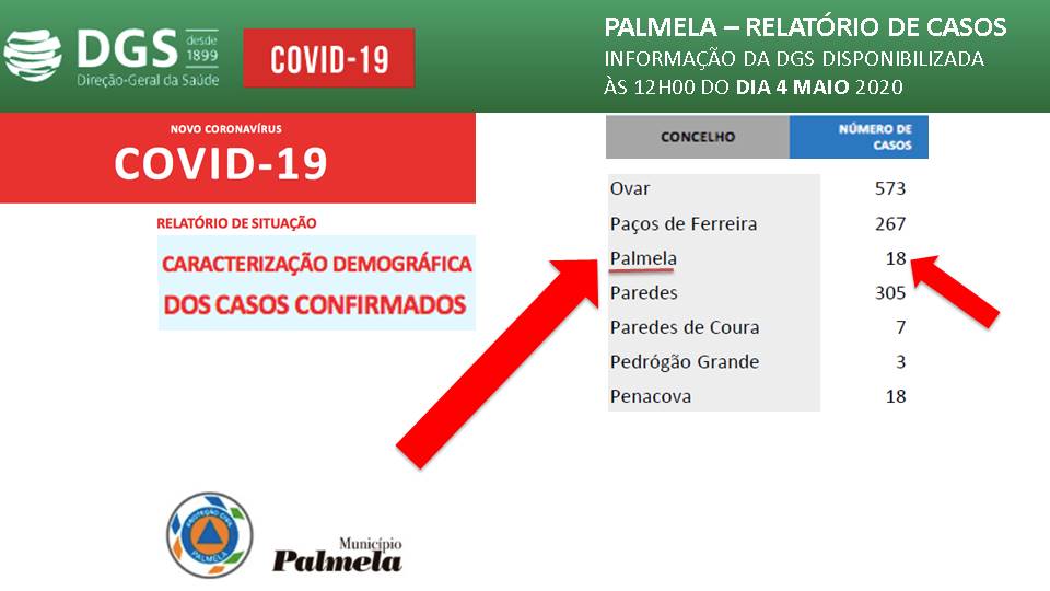 De acordo com informação disponibilizada hoje, dia 4 de maio, no site da DGS/Direção-Geral da Saúde, o concelho de Palmela regista 18 casos positivos de COVID-19.
