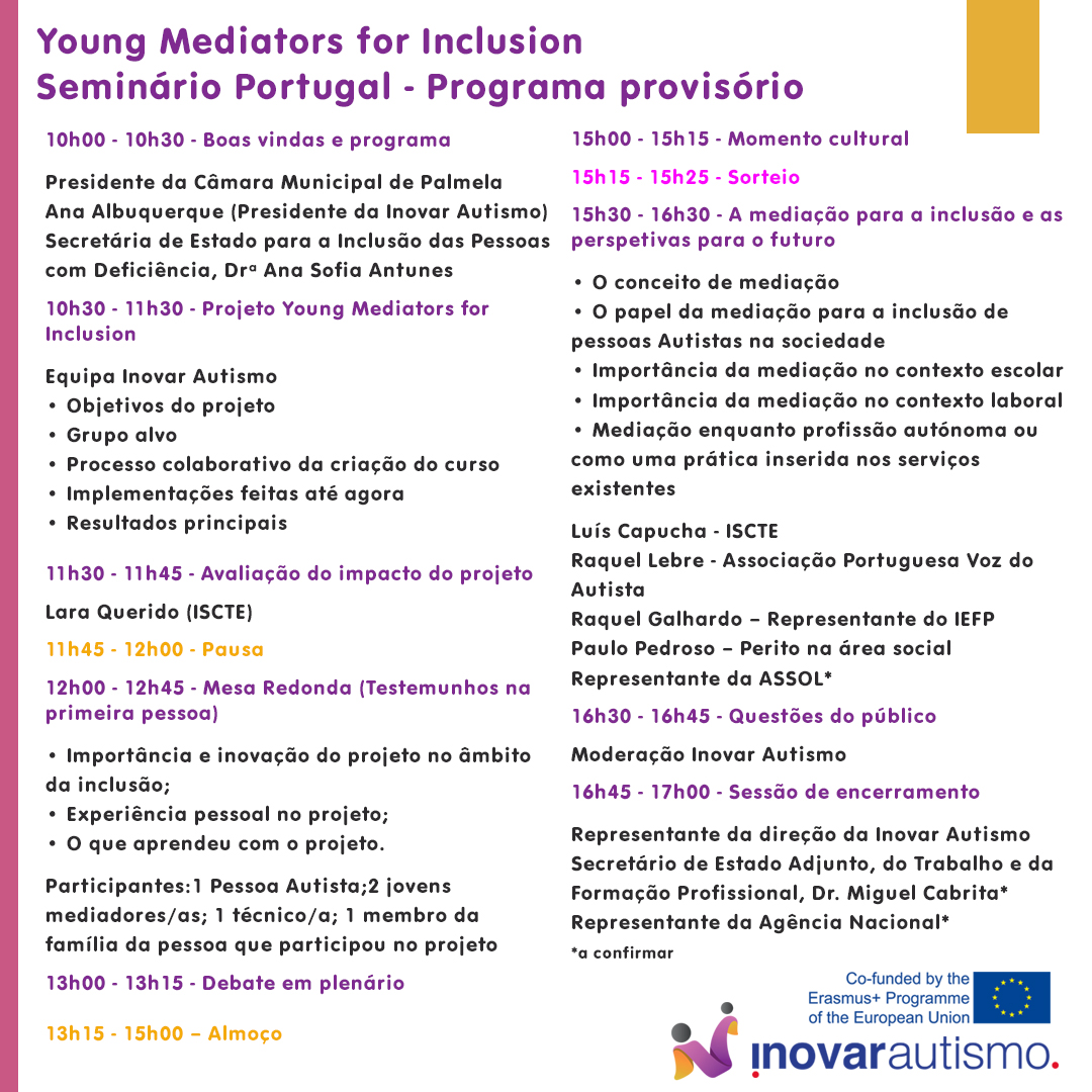 Espera-se que os contributos deste seminário – que contará com um conjunto diversificado de oradoras/es, com experiência em diferentes áreas, testemunhos de pessoas autistas e mediadoras - serão uma mais valia para a construção final do Guia Europeu para a Inclusão de Pessoas Autistas e da App do projeto.