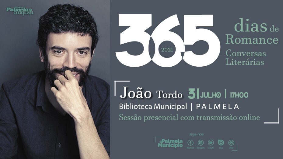João Tordo é o escritor convidado da próxima sessão “365 Dias de Romance ”, a 31 de julho, às 17h00, na Sala Polivalente da Biblioteca Municipal de Palmela. Esta conversa literária, que decorrerá de acordo com as indicações da DGS, contará, também, com transmissão online, em direto, através dos canais digitais Youtube e Facebook Palmela Município.