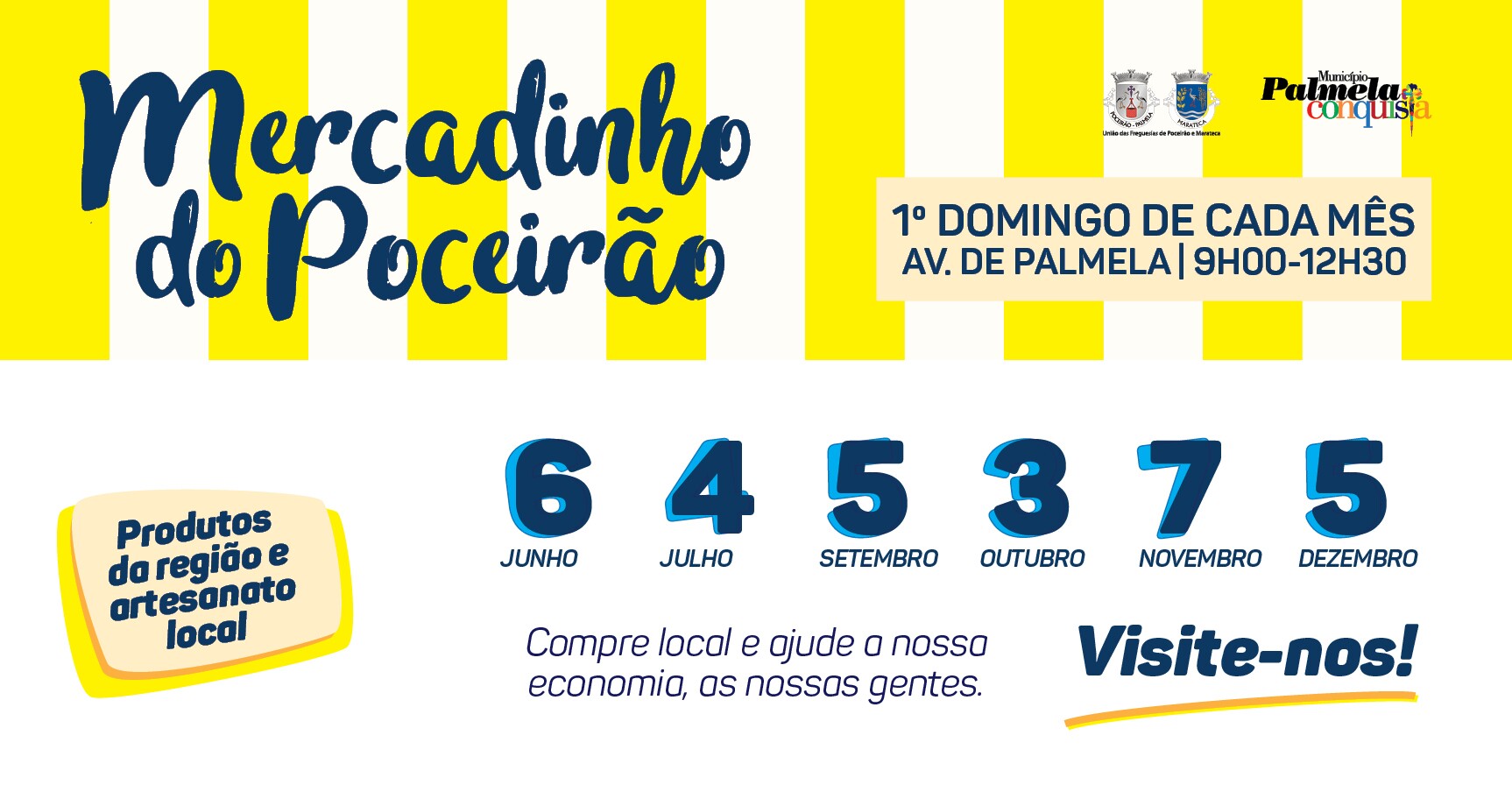 O Mercadinho de Poceirão realiza-se no dia 6 de junho (primeiro domingo de cada mês), entre as 9h00 e as 12h30, na Avenida de Palmela.