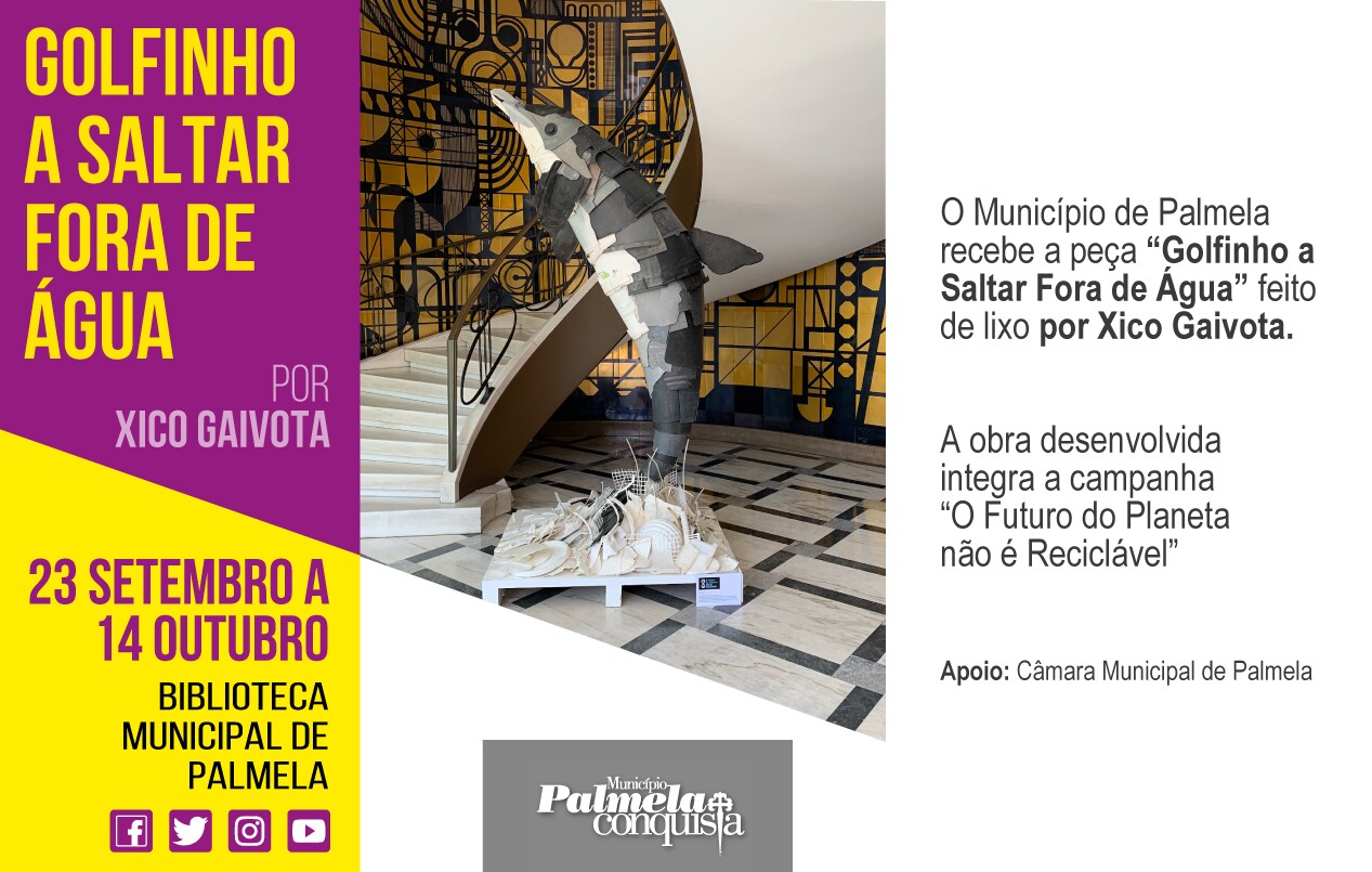 A escultura “Golfinho a Saltar Fora de Água”, criada pelo artista plástico Xico Gaivota, a partir de lixo marinho, está em exposição no átrio da Biblioteca Municipal em Palmela, até 14 de outubro.