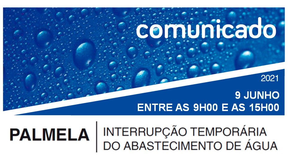 O abastecimento de água vai ser interrompido no dia 9 de junho, previsivelmente, entre as 9h00 e as 15h00, na Estrada do Cemitério, vila de Palmela.