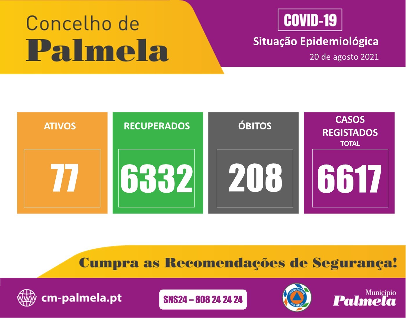 Palmela: Situação diária da COVID-19 | 20 de agosto de 2021