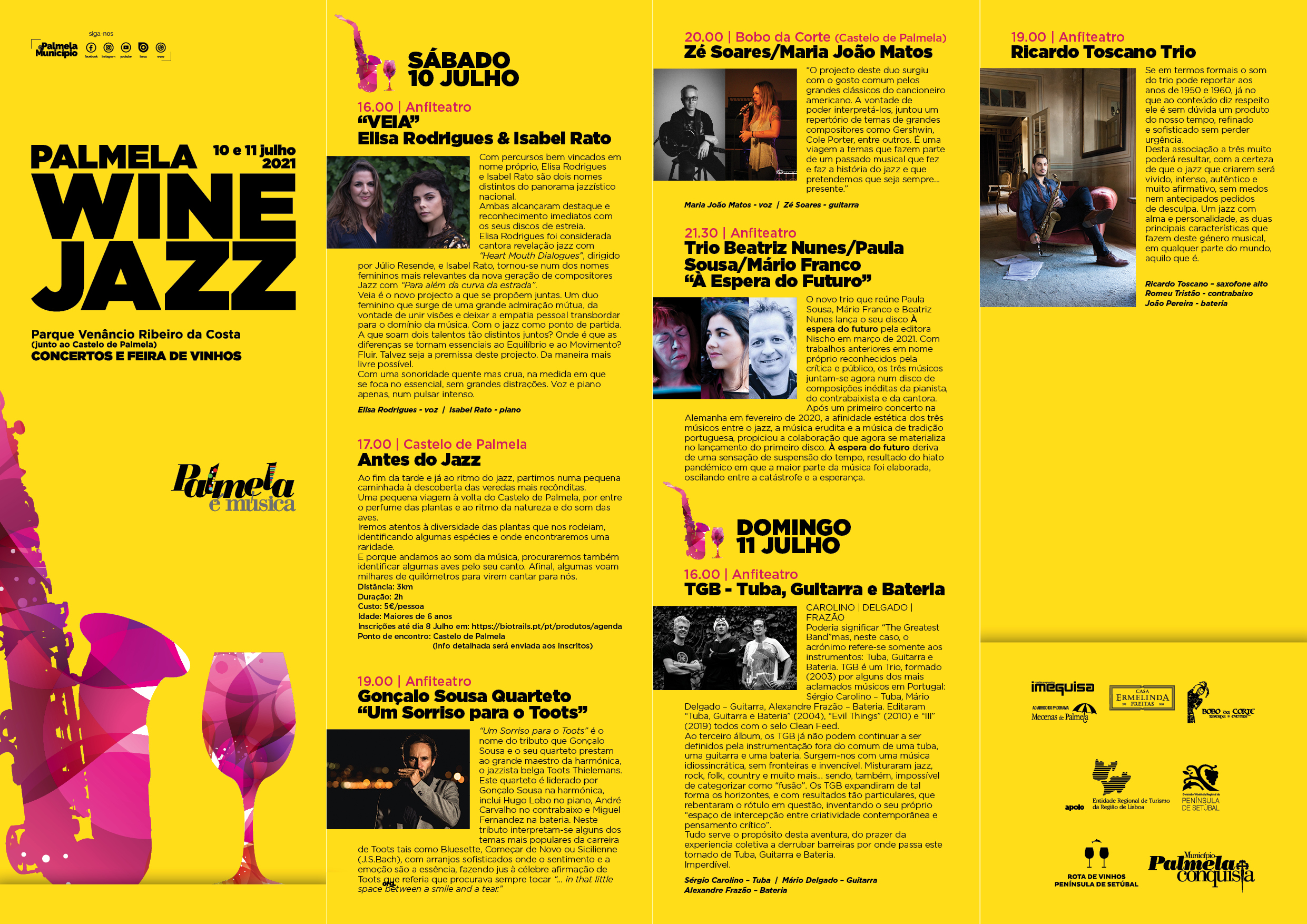 Promover os vinhos de qualidade da Península de Setúbal, aliando-os ao universo criativo do jazz e, consequentemente, conquistando novos públicos e visitantes são os objetivos do “Palmela Wine Jazz”, que conta com os apoios da Comissão Vitivinícola Regional da Península de Setúbal e de empresas do Programa “Mecenas de Palmela”.
