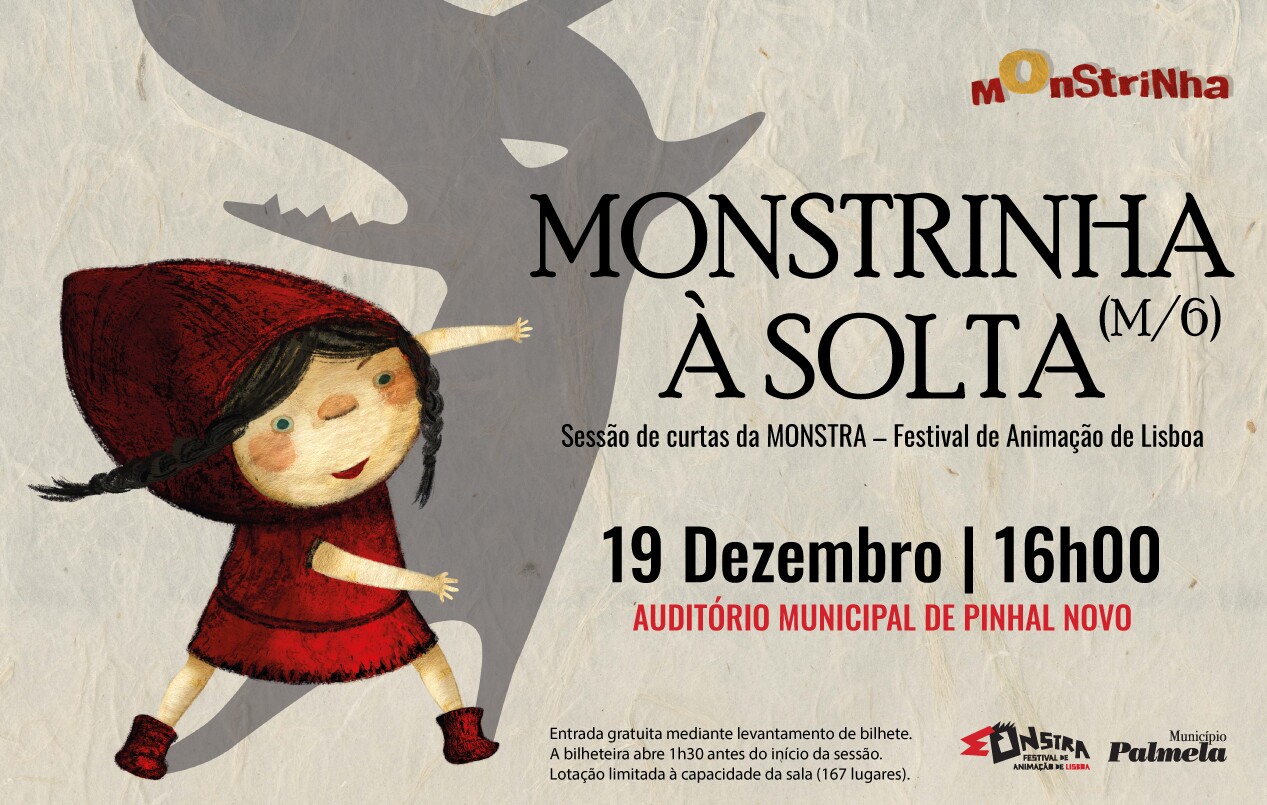A MONSTRA - Festival de Animação de Lisboa vai ao Auditório Municipal de Pinhal Novo no dia 19 de dezembro, com a sessão de curtas “Monstrinha à Solta”, a partir das 16h00.