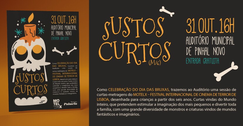 O Município de Palmela promove, no dia 31 de outubro, às 16h00, no Auditório Municipal de Pinhal Novo, a sessão de curtas-metragens “Sustos Curtos”.