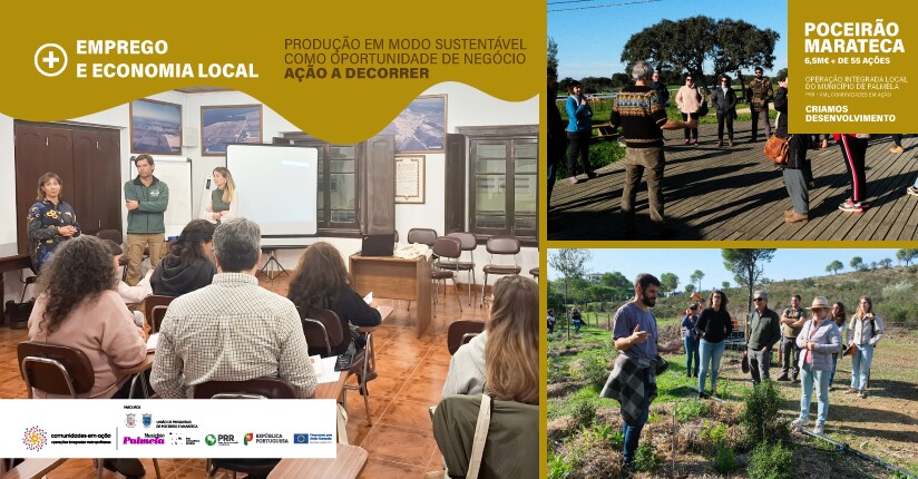 A Ação de Capacitação “Produção em modo sustentável como oportunidade de negócio” enquadra-se no âmbito do Eixo 5 – Emprego e Economia Local da Operação Integrada Local (OIL) de Poceirão e Marateca, com financiamento do Plano de Recuperação e Resiliência (PRR).